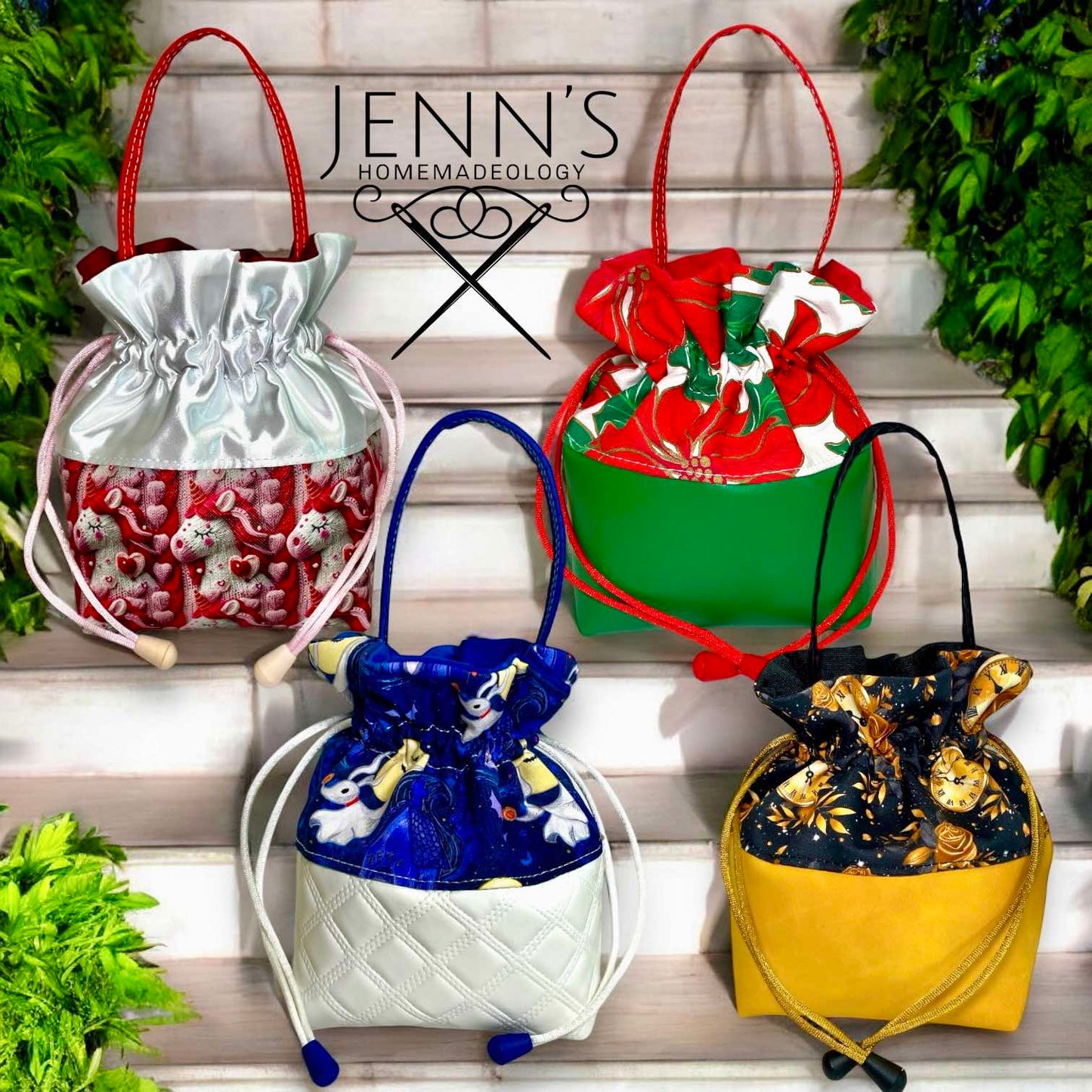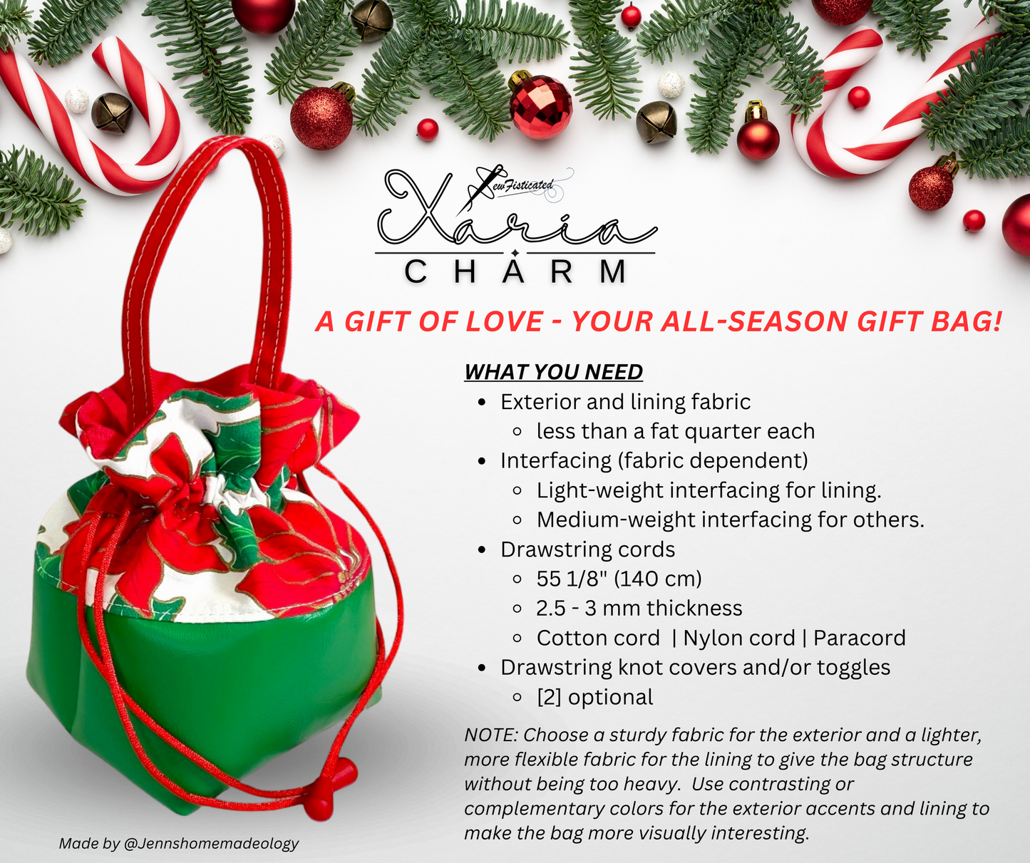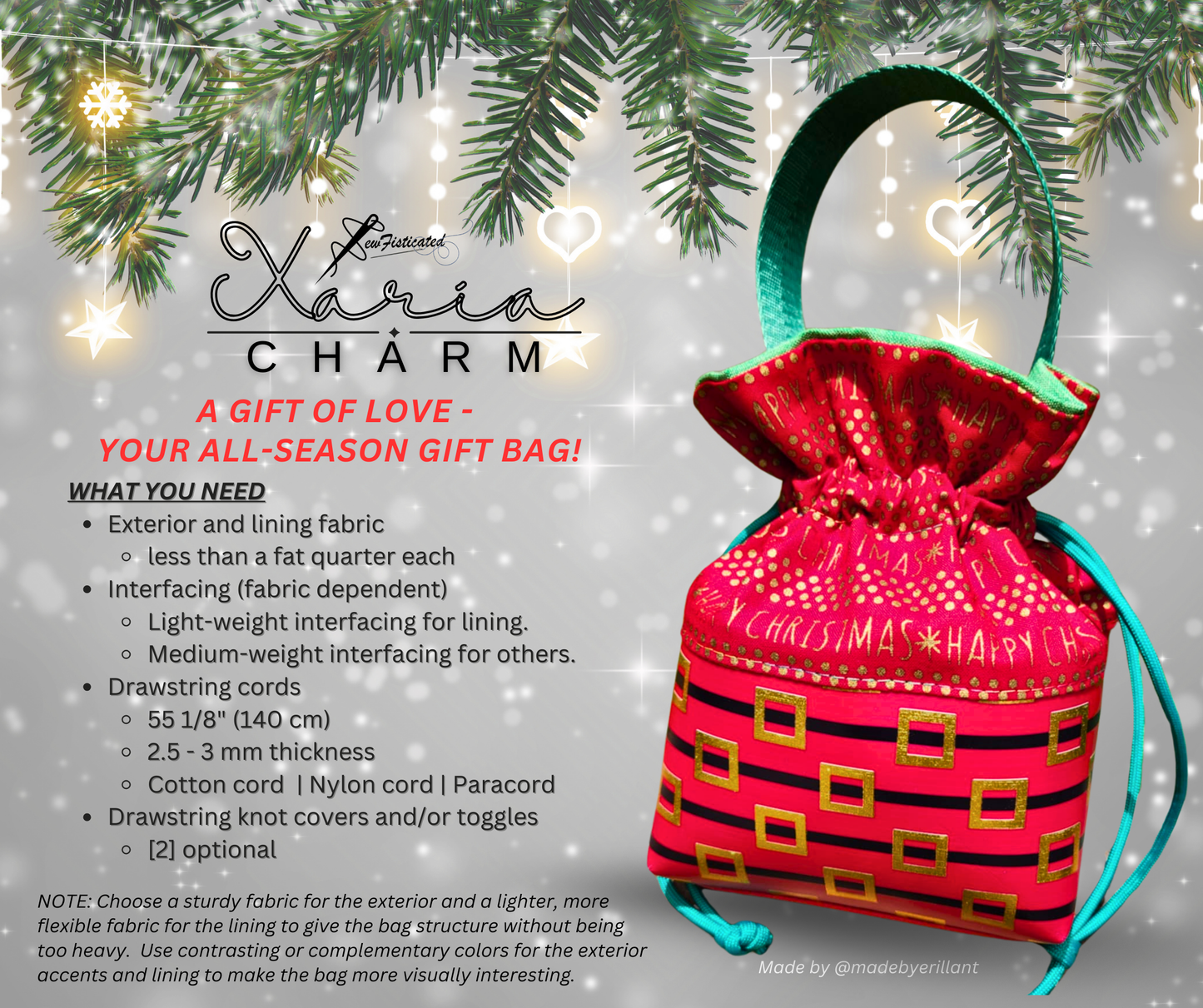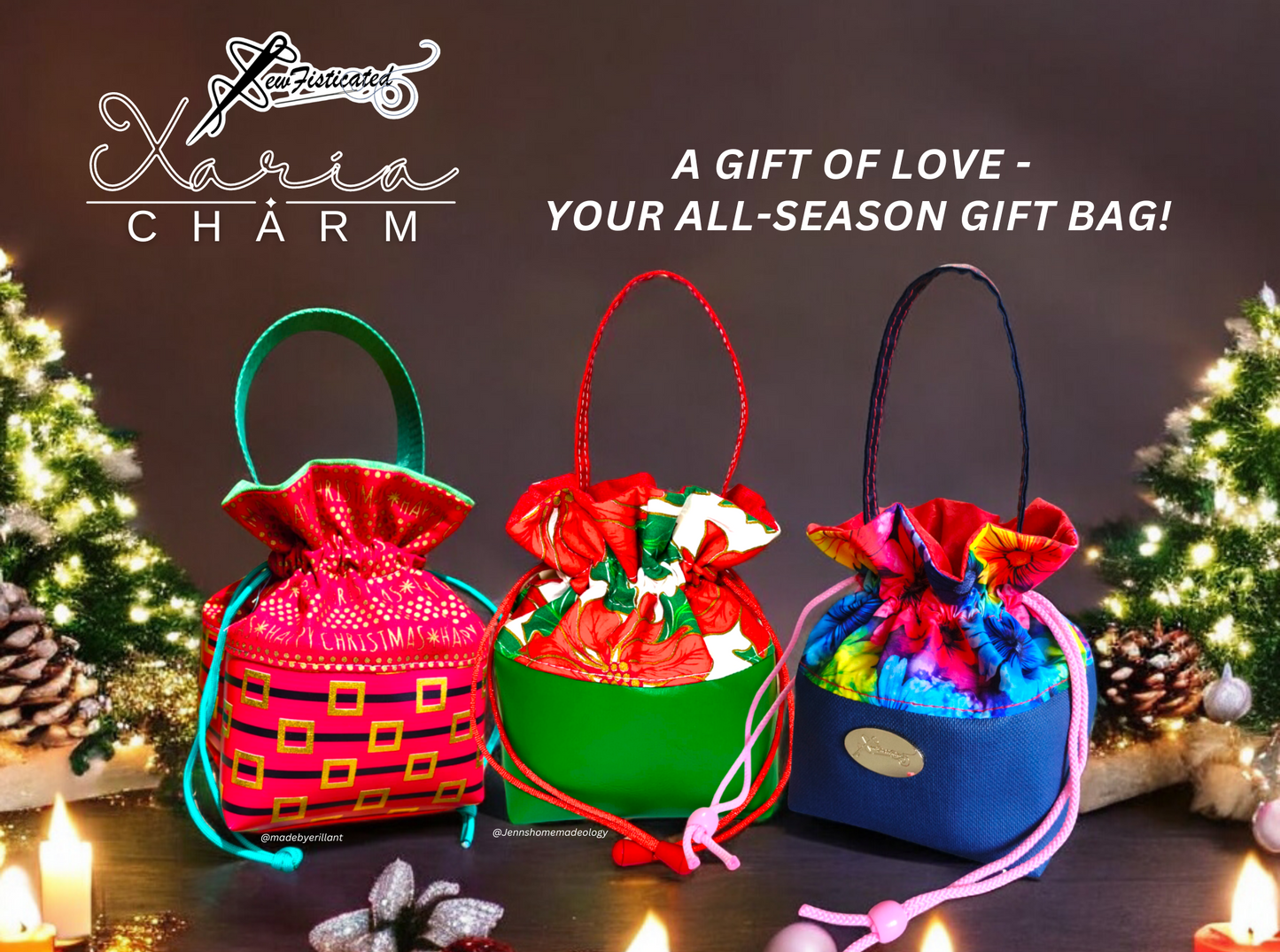 The simplicity of this design makes it ideal for beginners, with straightforward construction that yields a beautiful, functional result. You can play with the accent pieces - like fabric choices, trims, or embellishments - to give each bag a unique, personalized touch. Whether you're celebrating a special holiday or creating thoughtful handmade gifts, this pattern offers the perfect canvas for creativity.