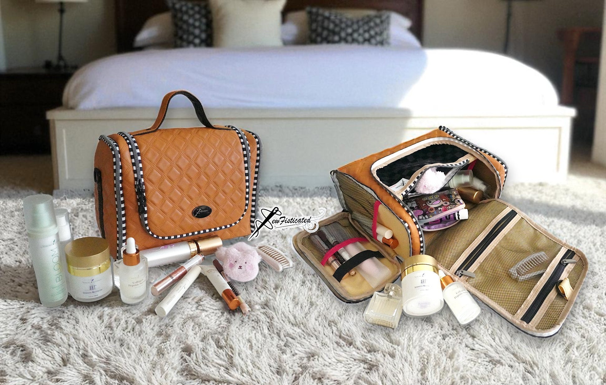 • Two side zipper pockets with mesh sections for brushes, toothbrushes, and slim items