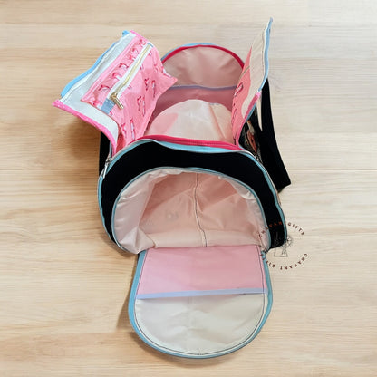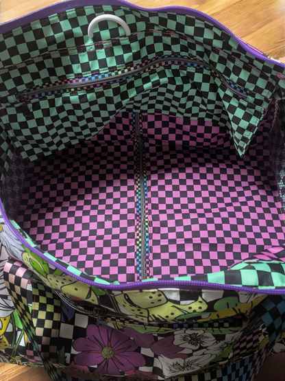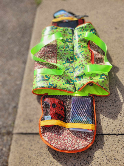 This pattern includes several pieces that span multiple A4/Letter-sized pages, most of which are rectangular. Lining pieces are marked with FOLD - you can either fold the fabric along the indicated line or print and tape two copies together if preferred. Only the exterior includes a full pattern piece, as folding vinyl along the center is often challenging.