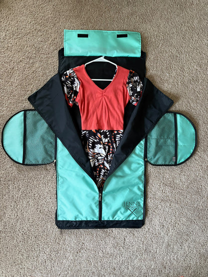 - A suit compartment designed to hold your clothing, including space for a clothes hanger