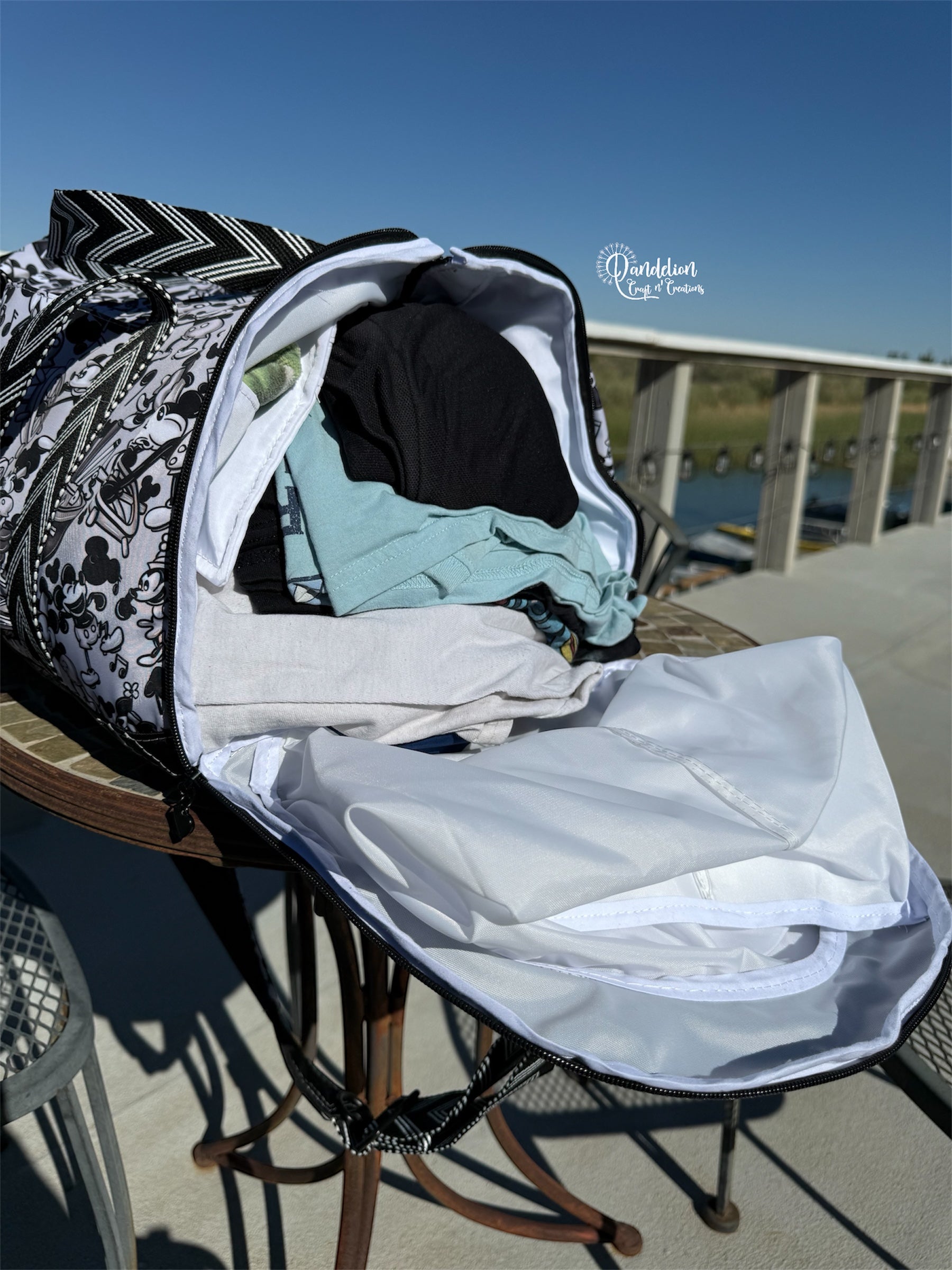 The Binding version involves more advanced techniques, with the main challenges being the side gusset zipper pocket and the shoe compartment. While it may take more effort, the finished result is incredibly satisfying and professionally polished.
