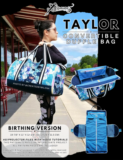 Today, I’m incredibly proud and excited to introduce one of the biggest patterns in my design collection: the Sewfisticated Taylor Convertible Duffle Bag — a versatile zip-down duffle that doubles as a garment bag. This pattern is a true labor of love and marks a deeply meaningful milestone in my creative journey.