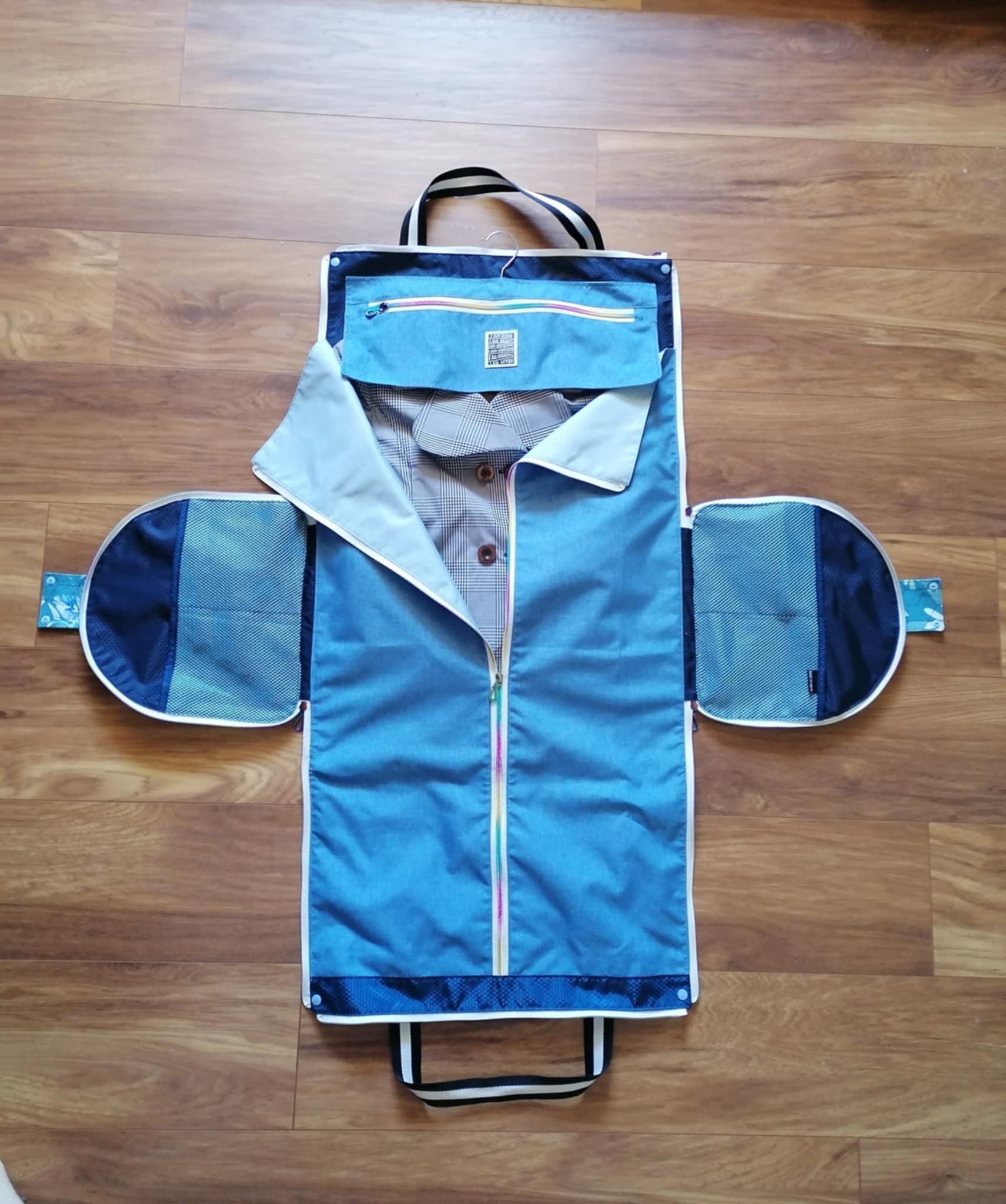 The other panel features a slip pocket and doubles up as a luggage sleeve